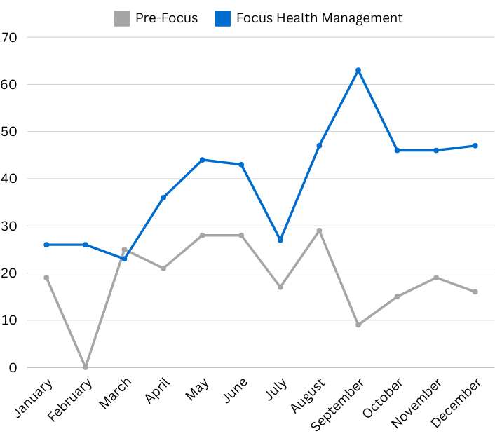 To do this, Focus Health Management worked with hospital physicians to address clinical care issues; moved and re-designed the partner's sleep center; and provided sleep education and marketing to reintroduce the program to referring physicians.